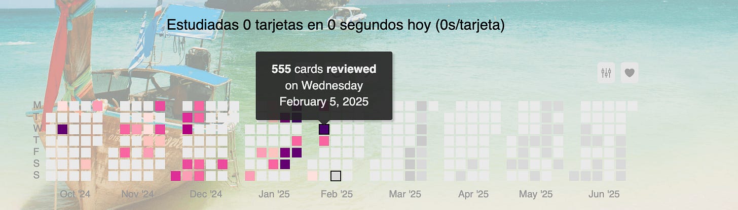 Y repaso las tarjetas que considero, tengo por defecto 30 al día, pero generalmente son muchas más: